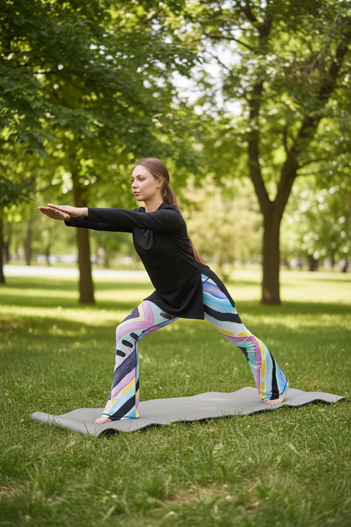 Move with freedom in our Printed Flared Pants, crafted from endurance-ready polyester with a sleek dri-fit finish. Designed to wick away sweat and keep you cool, these pants feature bold, playful prints that transform your athleisure look from basic to standout. With maximum comfort, stretch, and a fun edge, they’re perfect for making movement stylish.