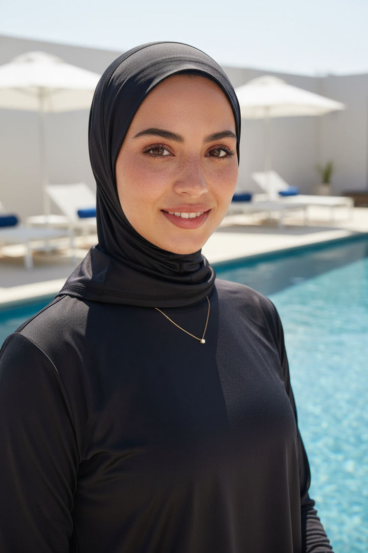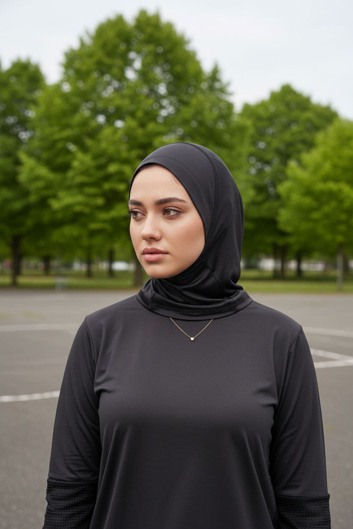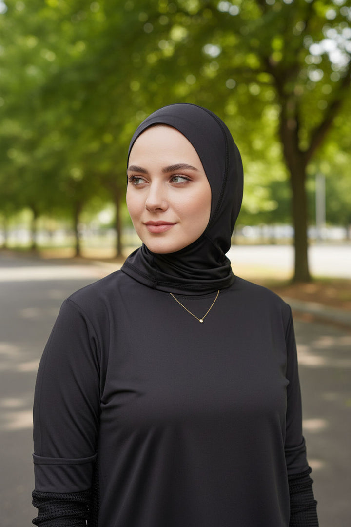 The Slip-On Hijab is crafted entirely in dri-fit fabric for breathable comfort and stretch. Its slip-on design ensures ease of wear and secure fit, making it an ideal everyday companion for performance-driven lifestyles.
