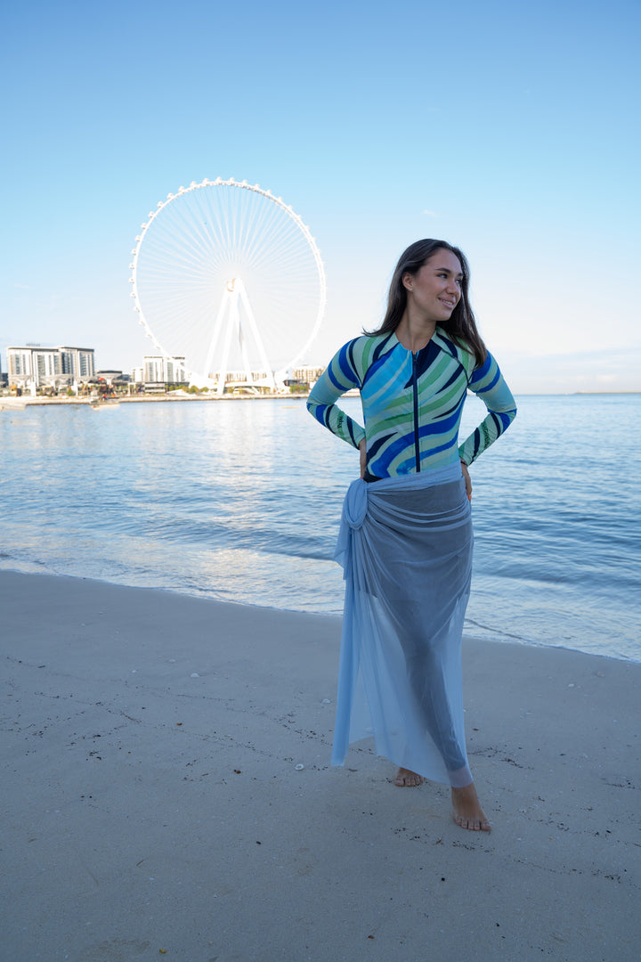 Rashguards are generally worn by surfers who wear a sports-bra underneath. We urge you to choose the color nude. It’s better with light colors.